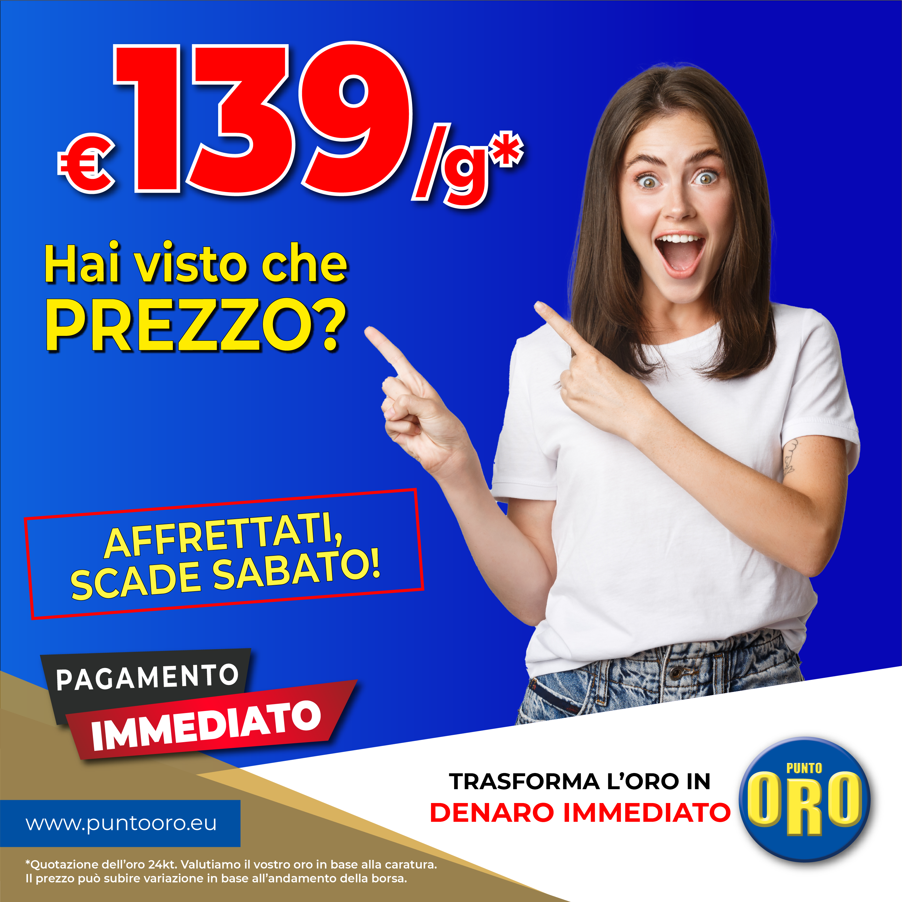 *Quotazione dell’oro 24 Kt. Valutiamo il vostro oro in base alla caratura. Il prezzo può subire variazioni in base all’andamento della borsa. Promozione valida per il mese di Marzo 2026